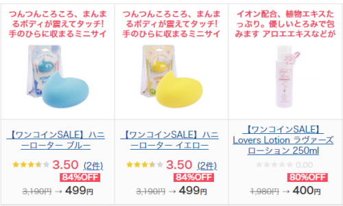 対象の商品は、ワンコイン(500円)までの価格まで割引されて販売されています。